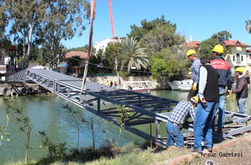 Arsuz Belediyesi’nin Uluçınar Mahallesi’ni ikiye ayıran Arsuz Çayı üzerindeki Uluçınar Köprüsü’nün yıkılması nedeniyle ulaşım bağlantısı kesilen mahalle sakinlerinin mağduriyetini gidermek amacıyla yaptırdığı çelik yaya köprüsünün montajı gerçekleştirildi. Arsuz Belediyesi Fen İşleri Müdürü Koray Mazmancı koordinesinde büyük bir titizlikle yapılan çalışmaları Uluçınar Mahalle Muhtarı Yakup Turan ile mahalle sakinleri de meraklı bakışlarla izledi.