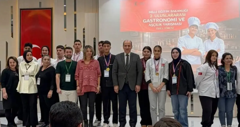 “Türk mutfağının geleneksel tatlarını koruma ve dünya mutfaklarıyla buluşturma misyonuyla düzenlenen MEB Uluslararası Gastronomi Festivali ve Aşçılık Yarışması sonucunda Türkiye 4.’lüğü elde ederek ilimize ALTIN MADALYA kazandıran öğrencilerimizi ve danışman öğretmenlerini tebrik eder, başarılarının devamını dileriz.”